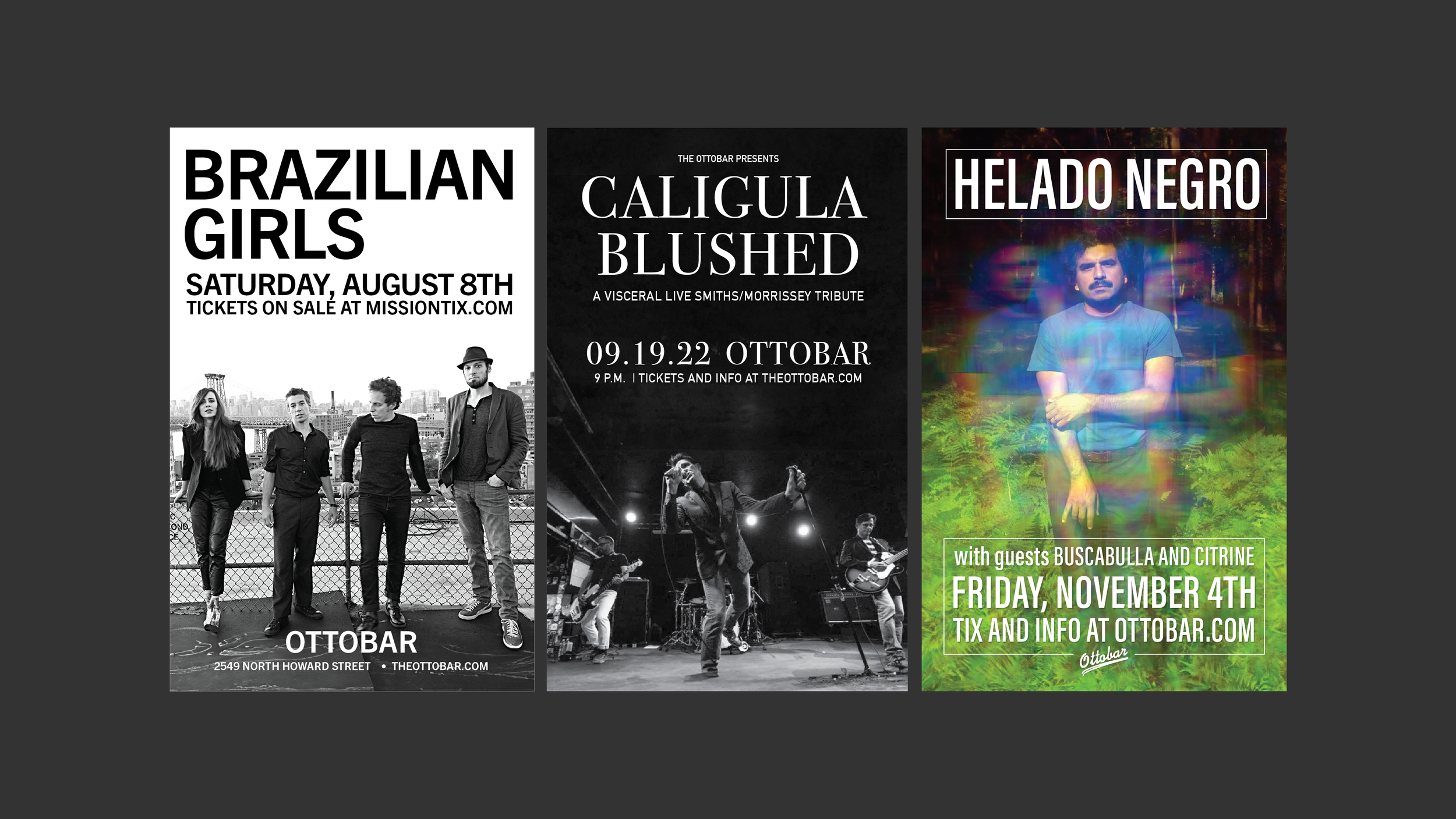 Various show posters for The Ottobar, Baltimore’s legendary punk and indie venue.
